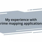 Posted inTechnological Advances My experience with crime mapping applications Posted by By Evelyn Hawthorne 05/12/2024 Key takeaways: Crime mapping applications enhance community awareness and safety by providing visual data about…